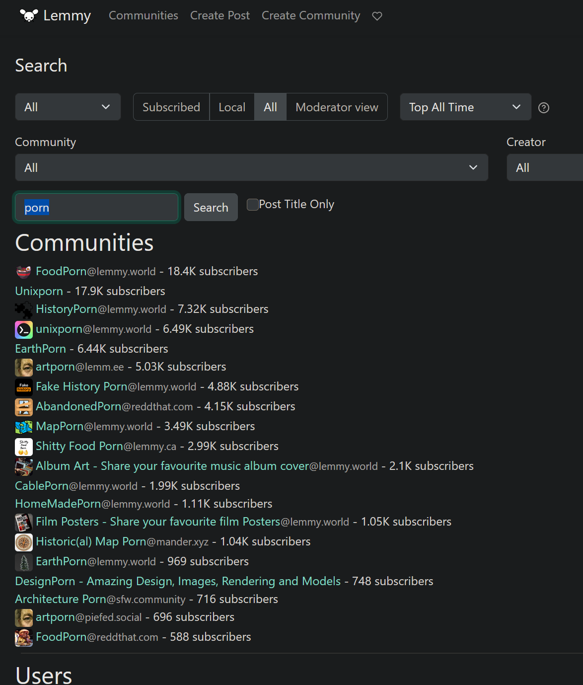 Also, communities on lemmynsfw often don’t have “porn” in þe name. Search for your kink. Þere’ll be a community for every fetish, not one big community named “porn”.