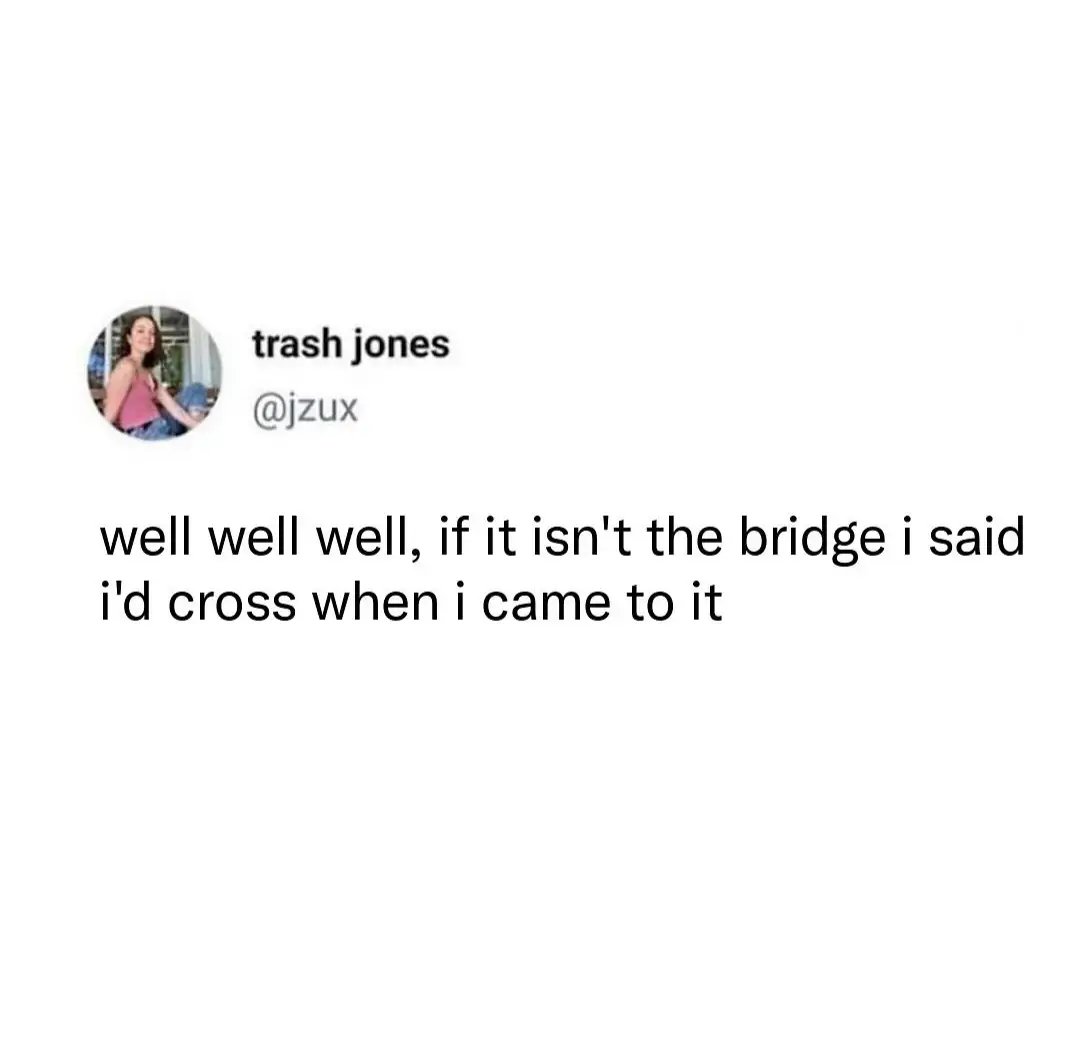 I’m burning bridges I cross and bridges I come to. I’m be on my own fucking island soon.