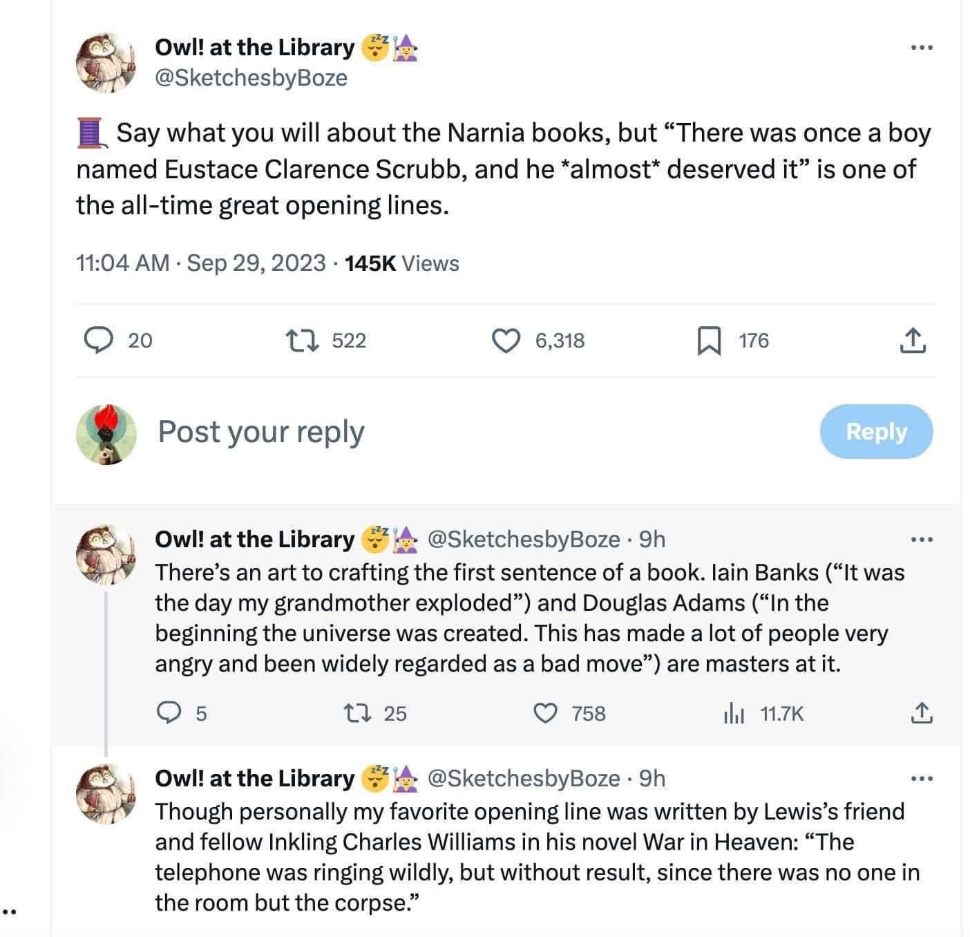 arrow-up11.09Karrow-down1imageWhat other great opening lines do you know?.lemmy.worldBonesOfTheMoon@lemmy.world to Microblog Memes@lemmy.worldEnglish · 14 days agomessage-square247fedilink