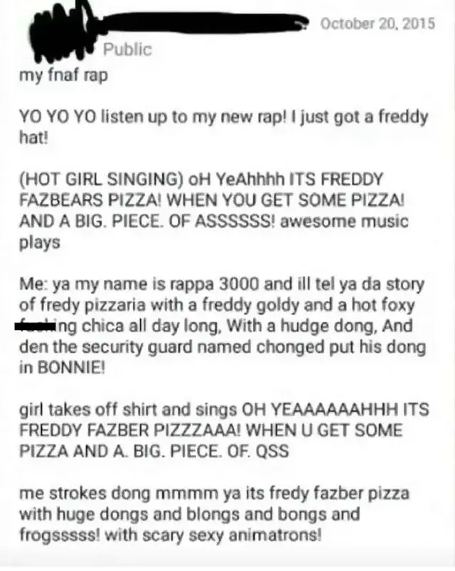 SSUPII@sopuli.xyz to Lemmy Shitpost@lemmy.world · 21 hours agofive nights at freddy's rapNSFWsopuli.xyzimagemessage-square8fedilinkarrow-up152arrow-down111