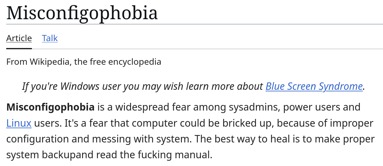 arrow-up1508arrow-down1imageDo you have Misconfigophobia or other OS-related diasases? 🤔lemmy.worldTux@lemmy.world to linuxmemes@lemmy.worldEnglish · 1 year agomessage-square45fedilink